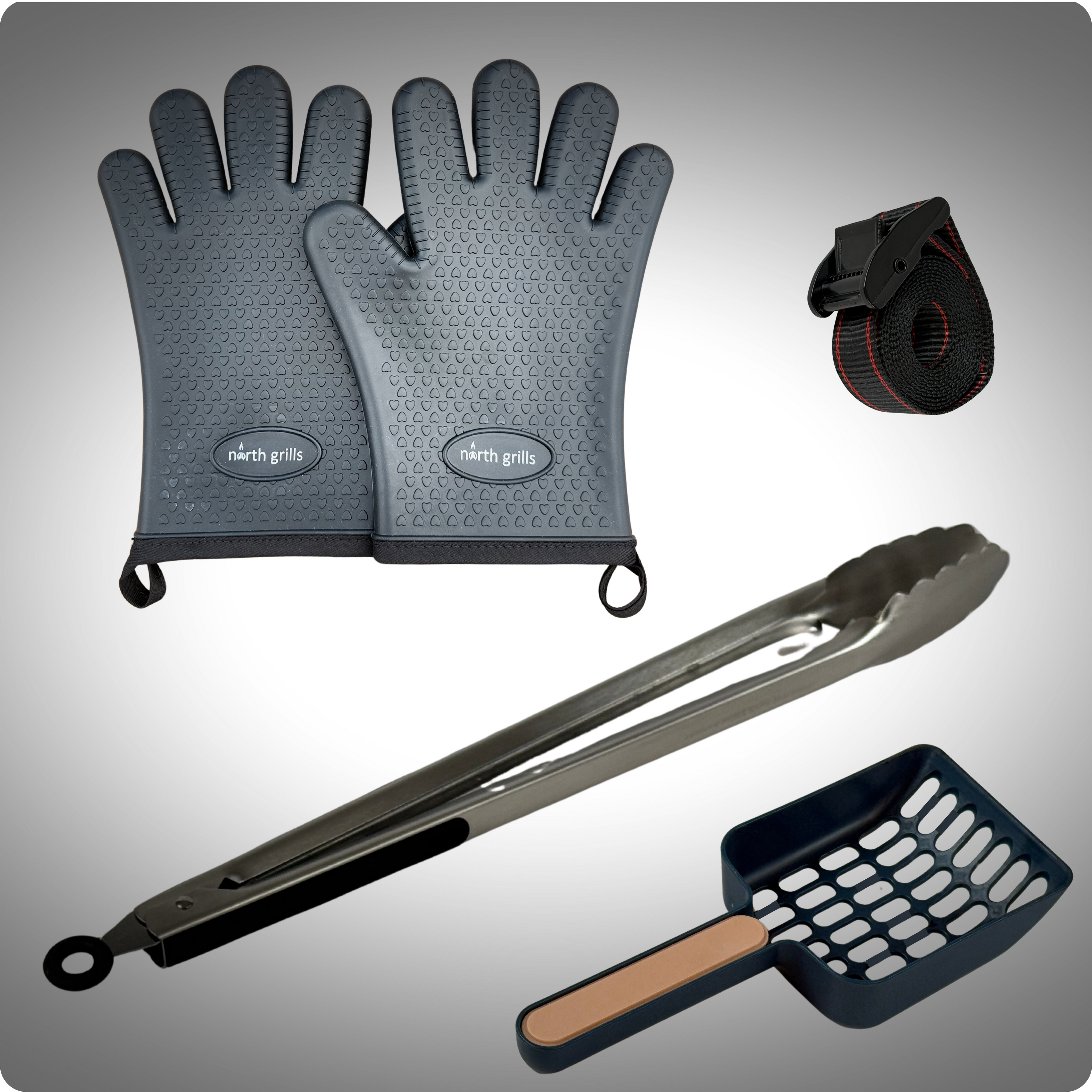Includes BBQ gloves, tie-down strap, 18" stainless steel 304 tong, and charcoal scoop for safe and easy grilling.